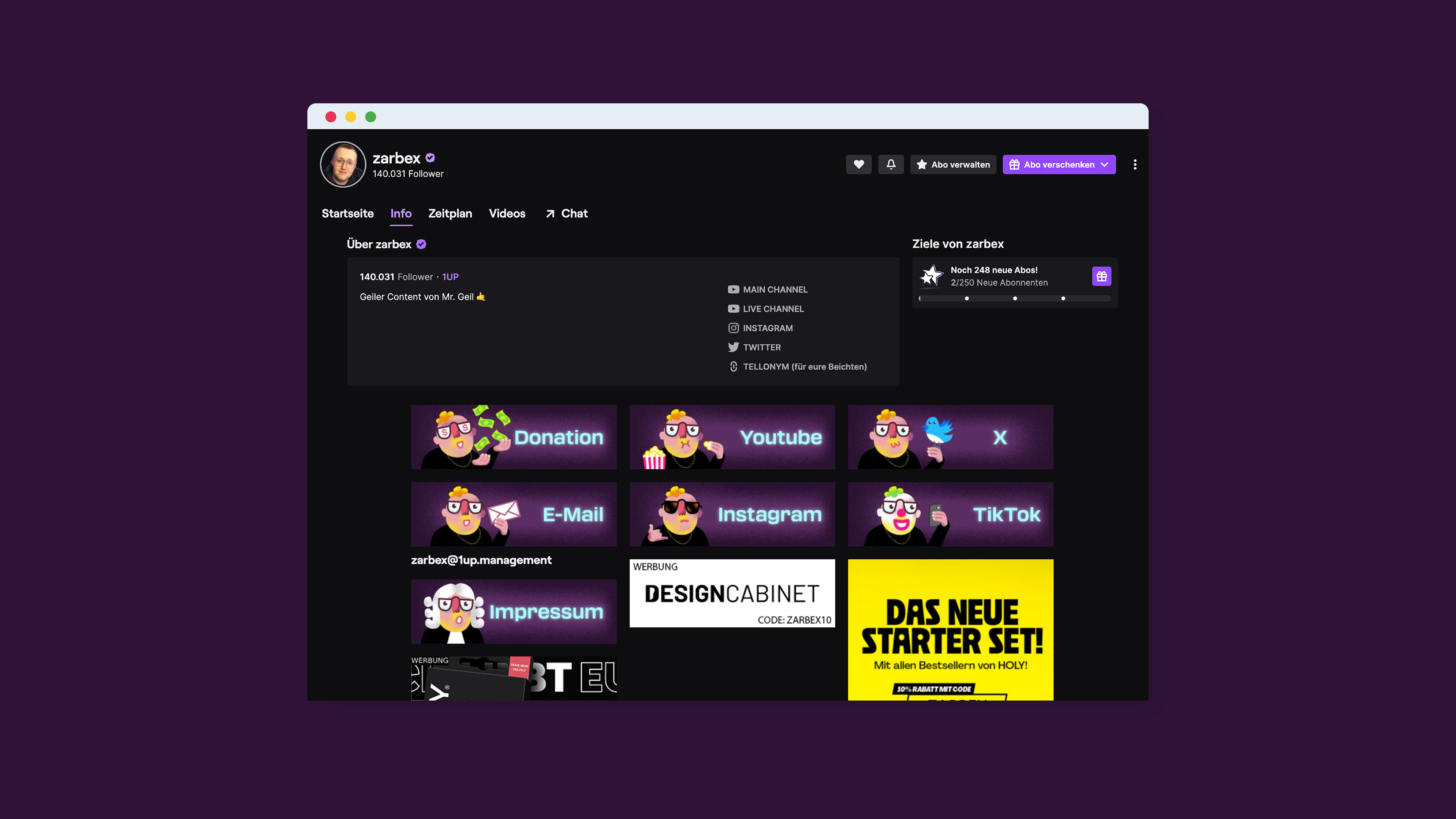 FÜR DEN CONTENT CREATOR ZARBEX HABE ICH EINE VISUELLE IDENTITÄT ENTWICKELT, DIE SOWOHL AUF STREAMING-PLATTFORMEN ALS AUCH AUF MERCHANDISE FUNKTIONIERT.