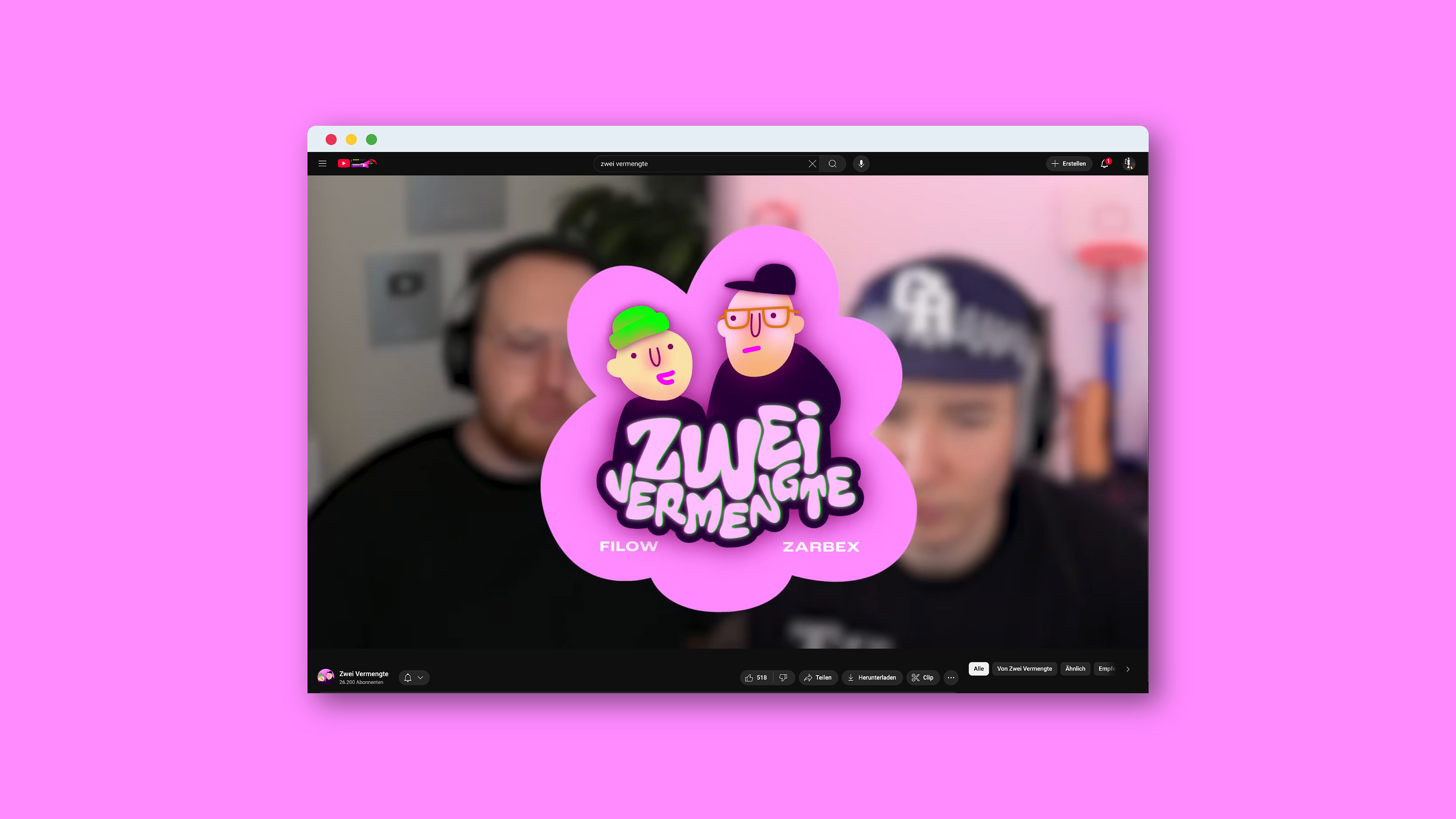 Für den Podcast Zwei Vermengte von Zarbex und Filow habe ich eine visuelle Identität entwickelt, die Stimmung und Dynamik des Formats aufgreift. Neben Logo und Illustration entstand auch eine Intro-Animation für den Videopodcast auf YouTube.